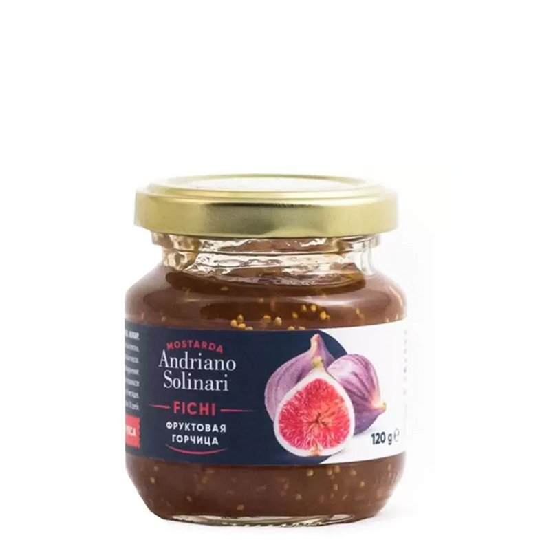 “Andriano Solinari” Fruit Mustard Fig — фруктовая горчица с добавлением инжира, которая идеально гармонирует с твердыми, полутвердыми и мягкими сырами. Ее можно использовать как заправку к салату или как ингредиент закусок. Горчицу можно подавать с морепродуктами, рыбой, дичью, стейками, а также паштетами и даже мороженым.